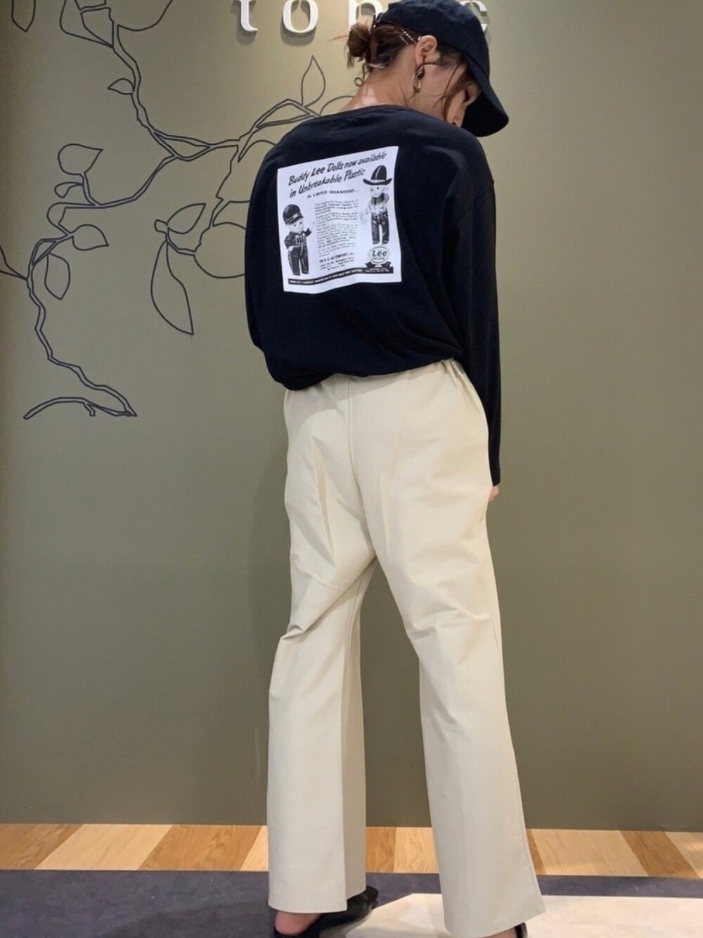 ご覧頂きありがとうございますஇ ○【別注】Lee×earth Buddy LeeロンT Lee×earth music and ecologyのコラボTシャツは3色展開になっています☺︎ カラーによって柄が違うのでぜひ店頭で見てみて下さい! ○セミフレアセンターシームパンツ センターシームになっているので脚長効果もあり、セミフレアなので美脚効果もあります! ストレッチ素材なのでとても動きやすいです☺︎