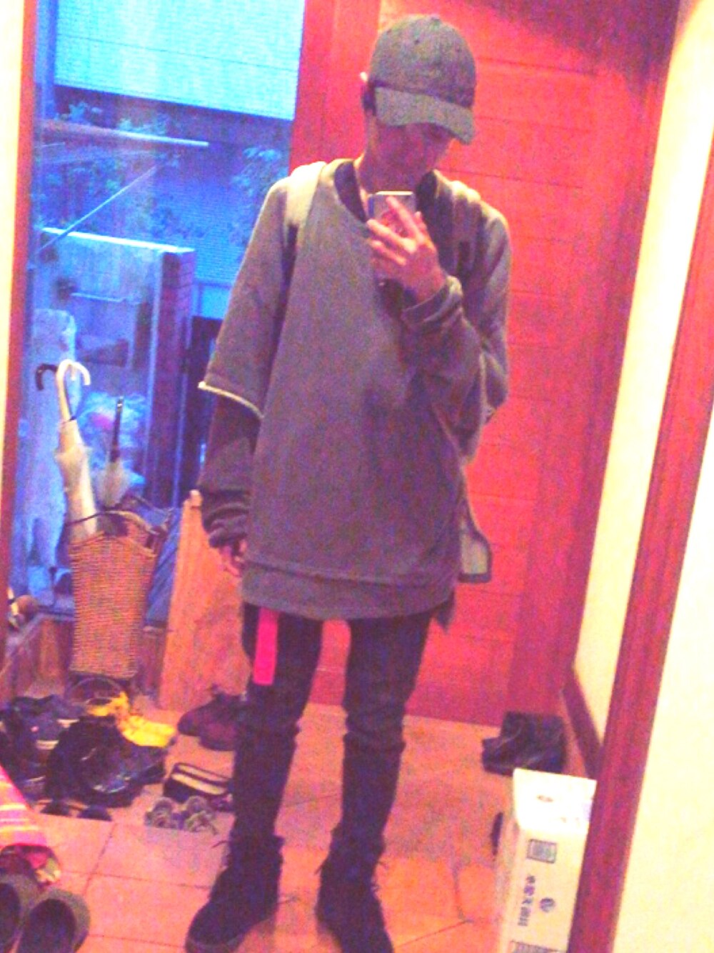 別に特に考えて着たというより、気付いたら全身グレーになってたので赤色のベルトしただけです。以上です
