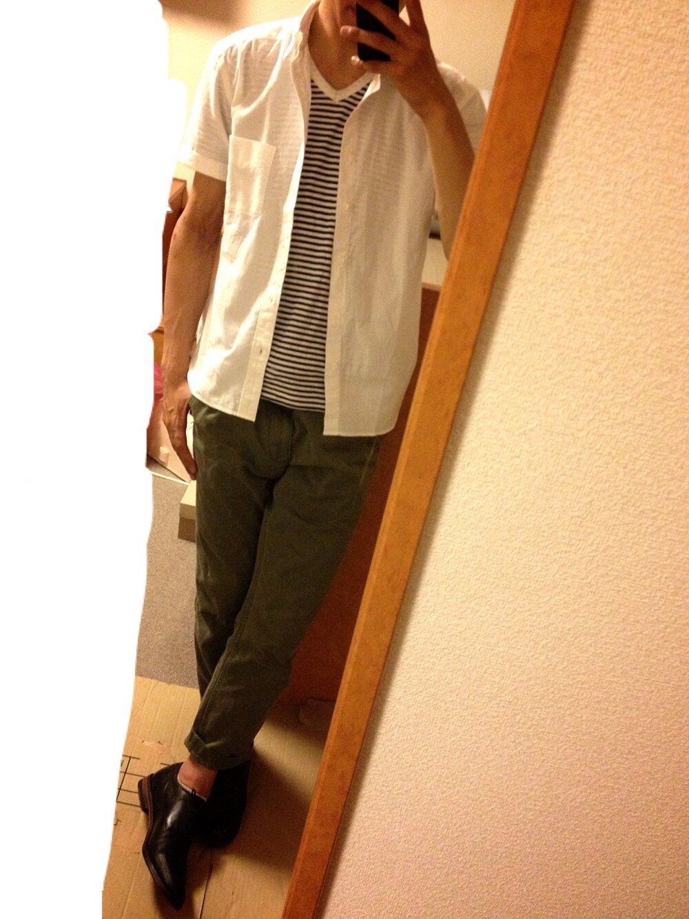 買ったばかりの白シャツを着てみました^ ^