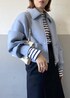こんにちは!ご覧頂き、ありがとうございます。 今の時期にぴったりな羽織アイテムの着回しスタイリングのご紹介。 こちらのカーディガンは、前のジップを閉めてトップスとしても着れるタイプです。今回は前を開けて羽織としてきてみました。 袖はボリュームがあり、少し厚手のトップスでも着て頂けます!今回は、スカートと合わせたスタイリングに。 着丈が長すぎず、ボトムはフレアやワイドのシルエットでもバランス良く合わせて頂けますよ。 朝晩冷え出したので、こういった軽い羽織りアイテムはあると便利ですよ!是非、ご覧下さいませ。