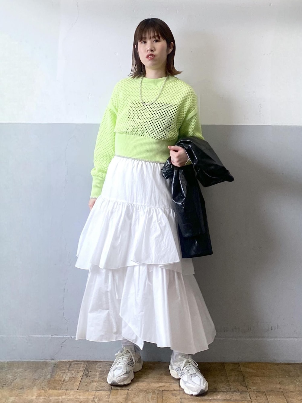 こんにちは!ご覧頂き、ありがとうございます。 リアルバイアイテムのご紹介です。 春なので、何かカラーアイテムを取り入れたいな、、と思いつつ、まだ少し肌寒い。そんな悩みを解決してくれたのが、このメッシュ編みのニットです! 袖は広めでゆとりがあるので、今の時期だと長袖をレイヤードするのがオススメです。暖かくなってきたら、キャミソールや半袖をレイヤードしてもらえれば、シーズンも長く着れるアイテム! 丈感は短めで、おへそは隠れるくらいでした。ハイウエストのボトムを合わせるか、インナーに長い丈のシャツやカットソーをレイヤードすれば、バランス良く着れますよ。