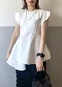 こんばんは!ご覧頂き、ありがとうございます。 WEB限定商品のご紹介です。 程よく厚みがあり、よれにくいカットソー素材で、肌触りも◎ペプラムシルエットで、お腹周りもカバーしてくれるのが嬉しいポイントです! お尻も丁度隠れる程の着丈なので、タイト目なボトムを合わせても安心感がありますよ。 是非、ご覧下さいませ!
