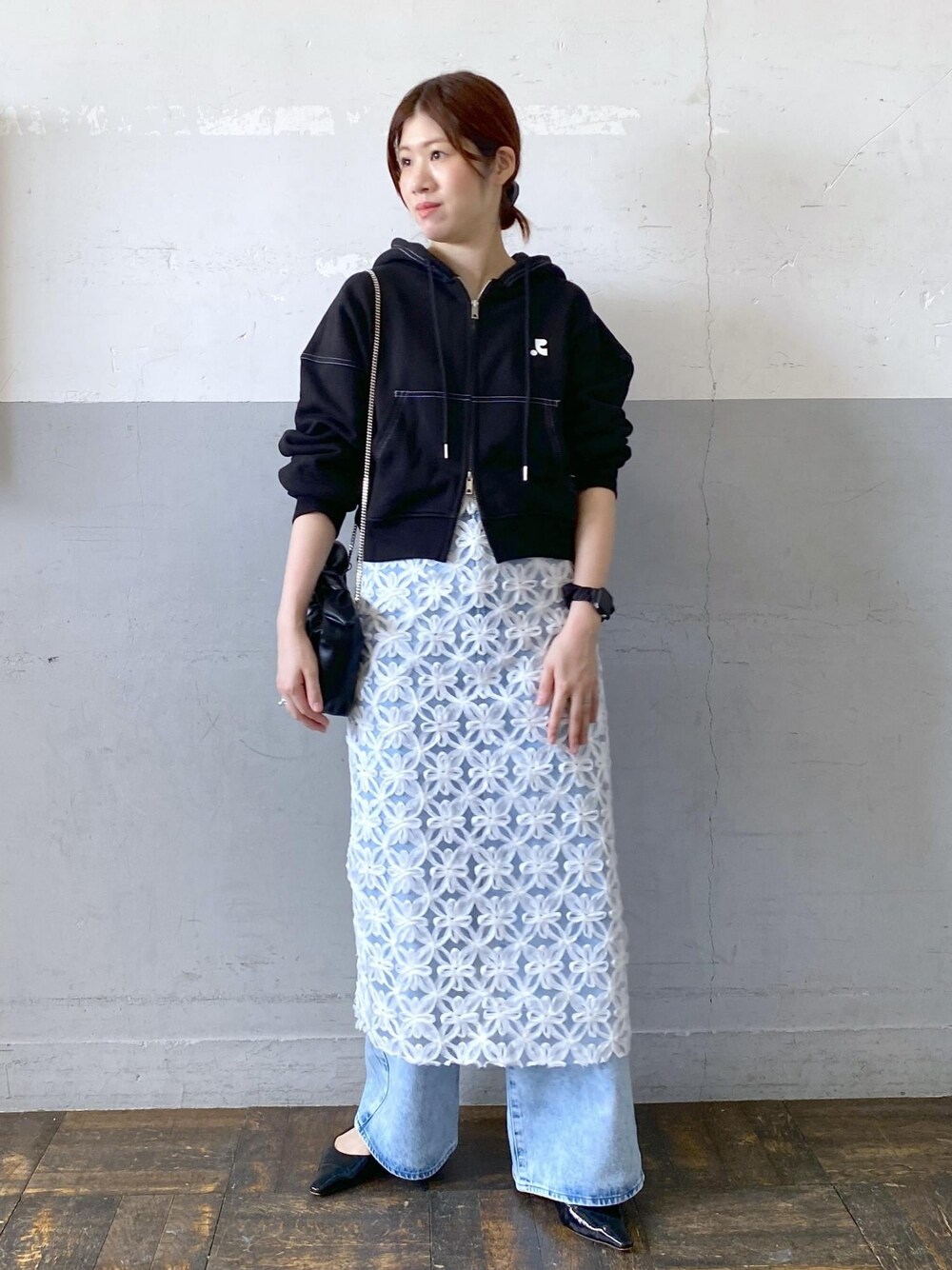 HIKARI(ADAM ET ROPE' 藤井大丸)のショルダーバッグ「【サステナブル】リボンモチーフミニチェーンバック」を使ったコーディネート