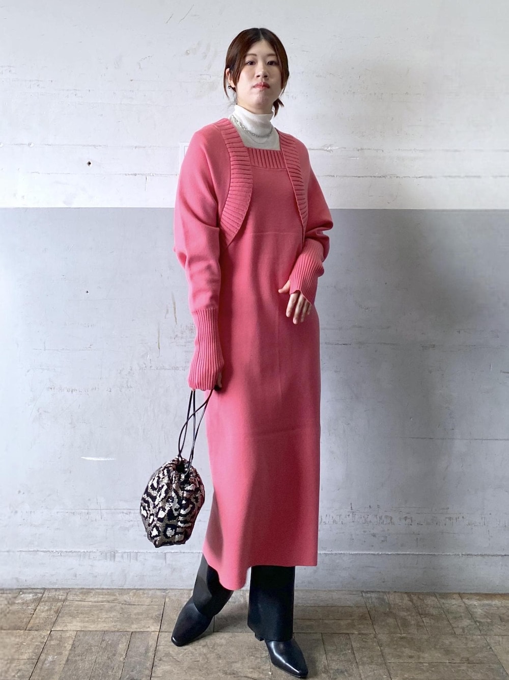 こんにちは!ご覧いただき、ありがとうございます。 オススメのワンピースを、ご紹介いたします。 こちらのワンピースは、ボレロを羽織っているようなデザインが特徴で、ここ数年定番のデザイン。 非常に柔らかく、滑らかな肌触りで、伸縮性があるので着心地も抜群! 身長167cmで、足首は完全に見える着丈でした。 小柄な方でも挑戦しやすいデザインです! 今回は、リブのタートルネックをレイヤードしたスタイリングに。今の時期は寒いので、レイヤードするのもオススメです! 是非、ご覧下さいませ。