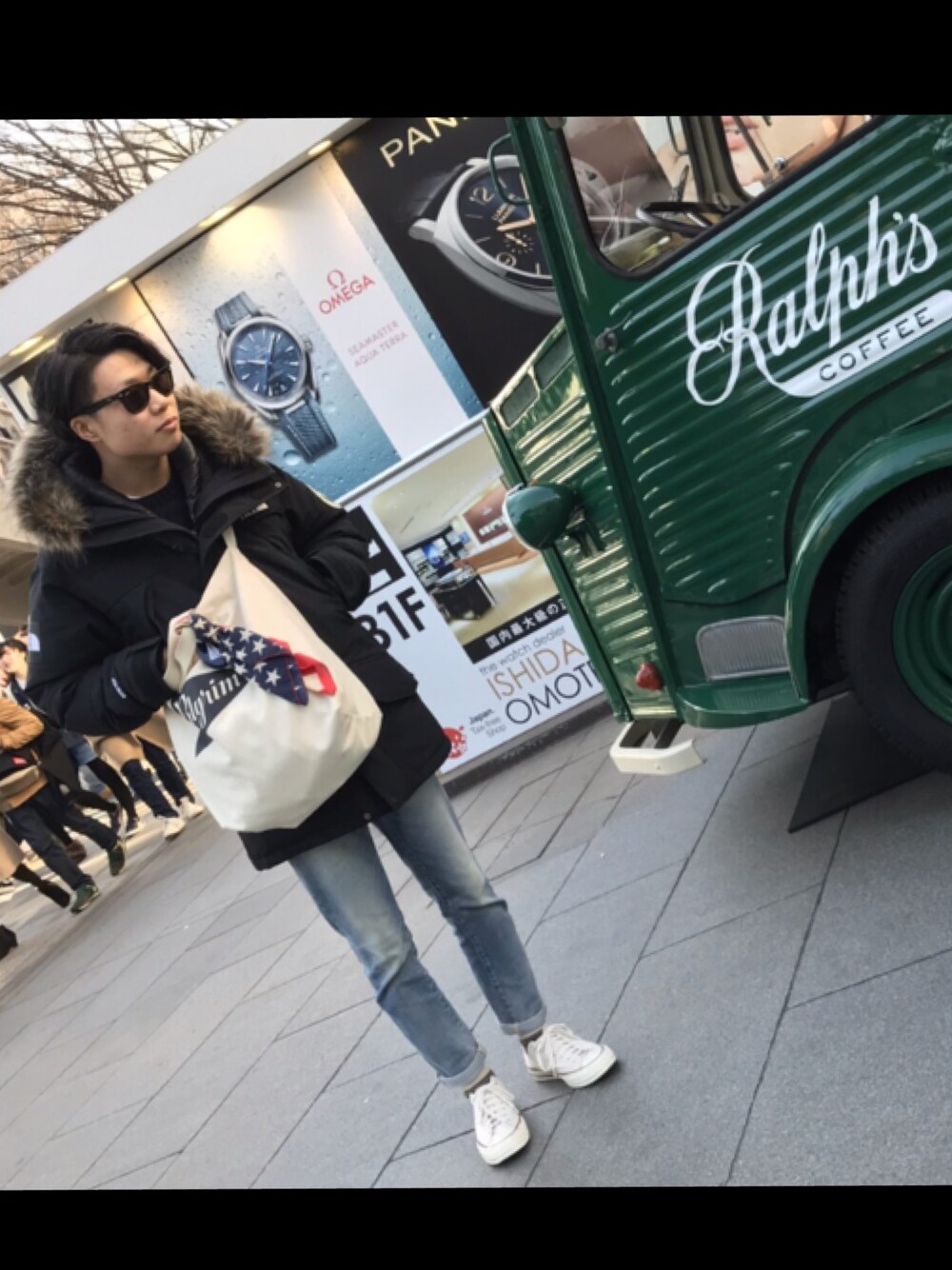 アンタークティカパーカでぬくぬく😎 生成りのct履く時はだいたいこのデニム!