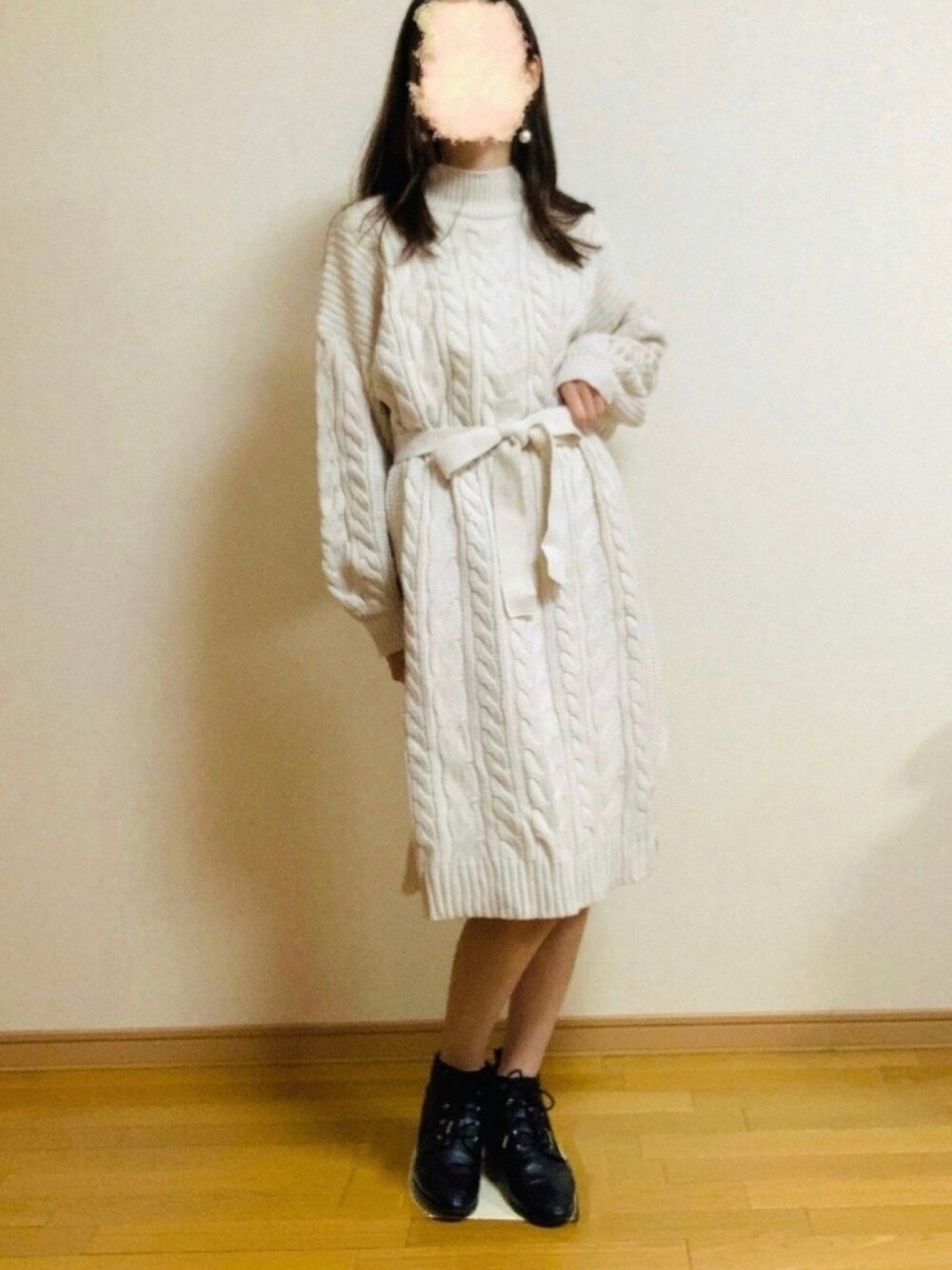 ご覧いただきありがとうございす♡ GRLのニットワンピースのコーデ。 値段は1999円 品番:mb1019⠀ リボンベルト付きケーブル編み ハイネックニットワンピース 予約商品ですがまだ売っています✨ アウターはコートでもダウンジャケットでも 合います☆ °