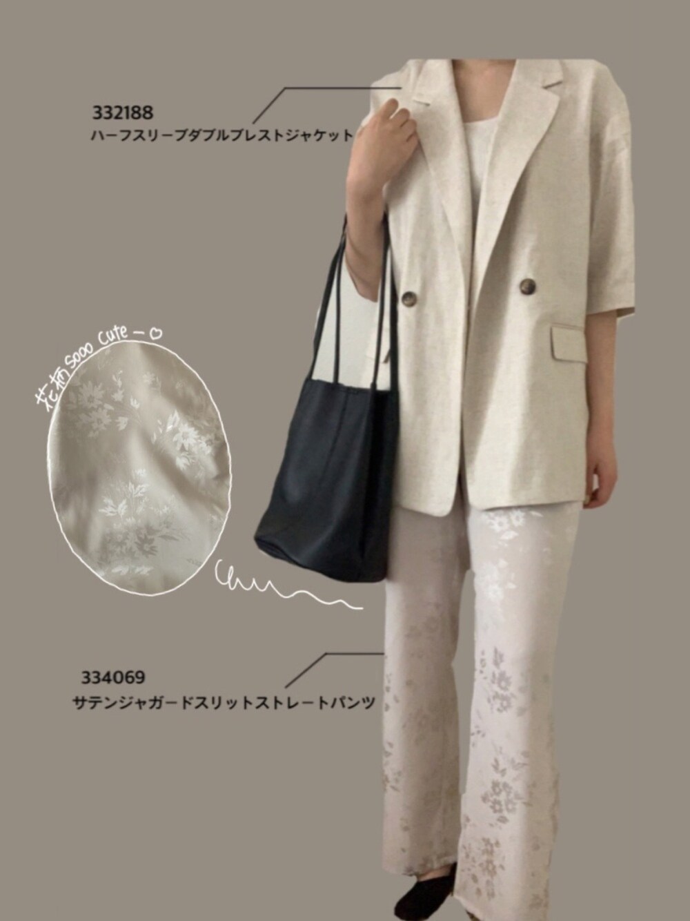 All GUアイテムでワントーンコーデ ジャケットは薄手で今の時期も夏も使える🤍 パンツに入ってる薄い花柄がもう可愛すぎて恋。 是非お近くのGUへ😌