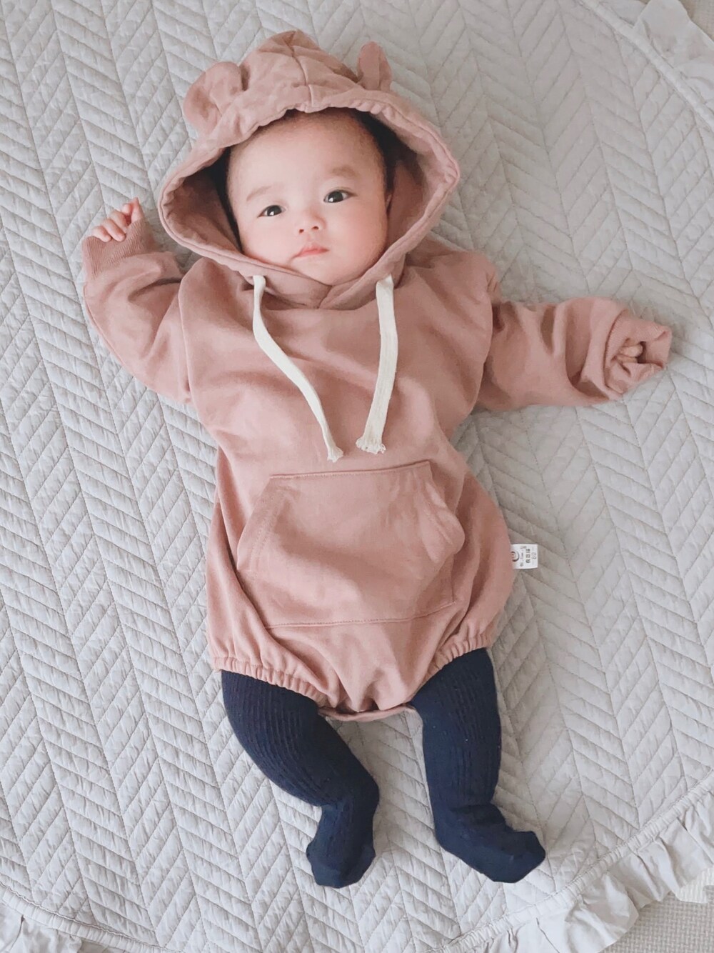 くまさんロンパース×GAPくまさんタイツ 6ヶ月 80cm着用 くまさんタイツは0-12m 着用 韓国子供服は少し大きめ?のようで ブカブカだけど、長く着れそう♡