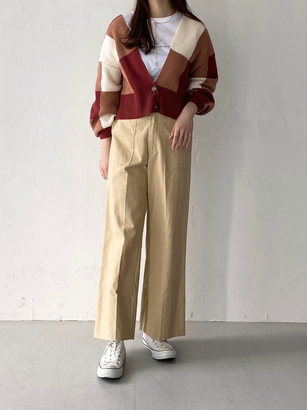 ご覧いただきありがとうございます🫶🏻 秋らしいニットカーディガンを使ったコーデにしてみました! 大きなブロックチェックのショート丈カーディガンはボタンを閉じても開けて羽織っても🙆🏼♀️