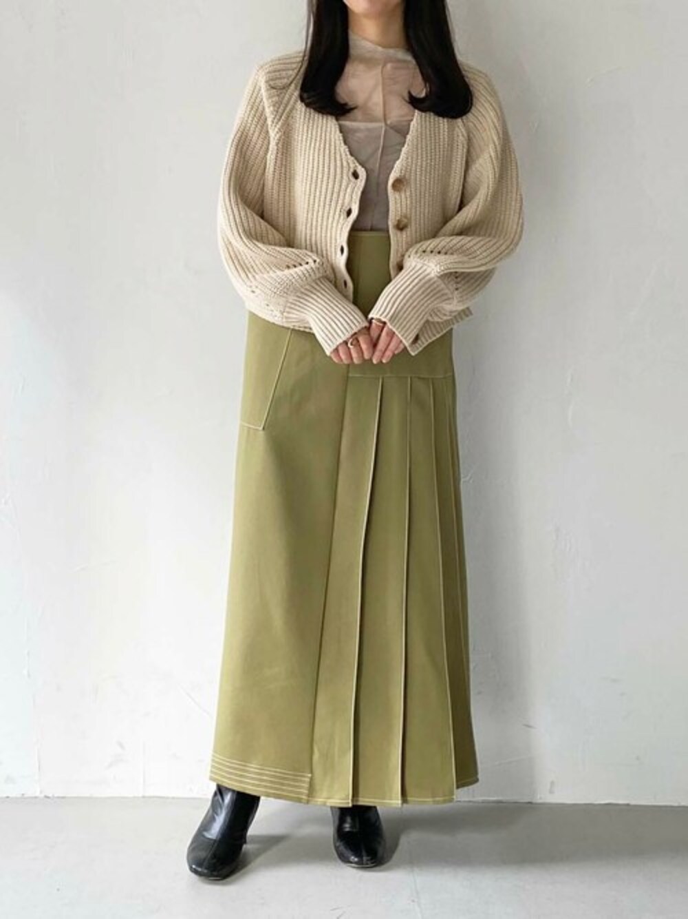 ご覧いただきありがとうございます🫶🏻 アシンメトリーなデザインのジャンスカの着回しコーデ! ニットカーディガンを合わせてシンプルだけどこなれ感のあるスタイルに👌🏻