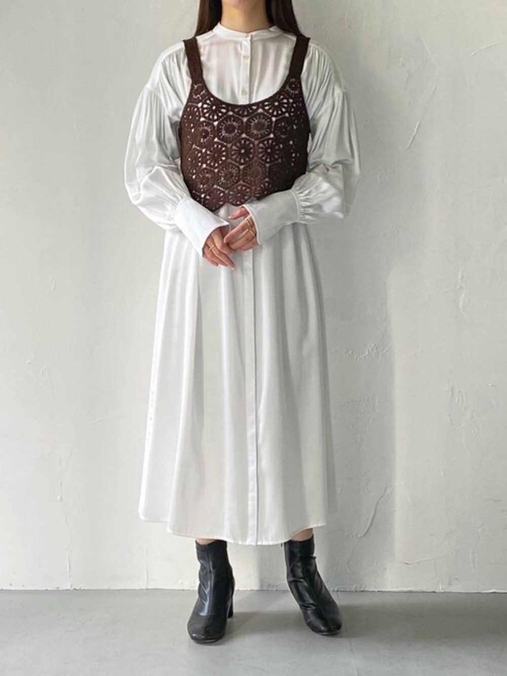 ご覧いただきありがとうございます🫶🏻 かぎ針編みニットビスチェが入荷しました! 花柄モチーフのデザインがレイヤードしたときに映えるアイテムです👌🏻 これからの季節、Tシャツやブラウスにプラスすると華やかなコーデにしてくれます!