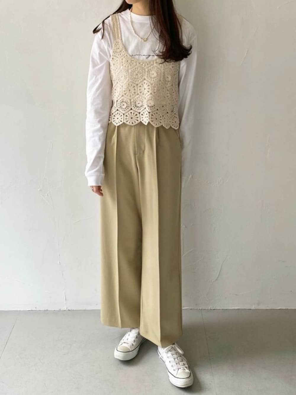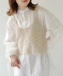 ご覧いただきありがとうございます🫶🏻 HERCLOSETで大人気のロゴTにかぎ針編みのビスチェを合わせたナチュラルなコーデに👌🏻 花モチーフのデザインが春夏にぴったりです🌸