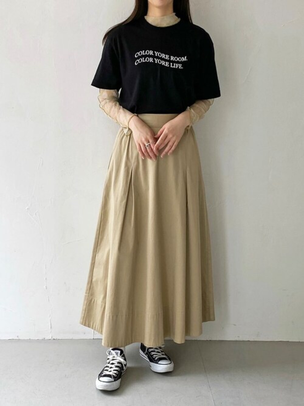 ご覧いただきありがとうございます🫶🏻 ウエーブロゴデザインの半袖Tシャツが入荷しました! シンプルだけど今年らしさのあるロゴです! シアートップスを合わせたレイヤードコーデでカジュアルさに女性らしさもプラス🌤️