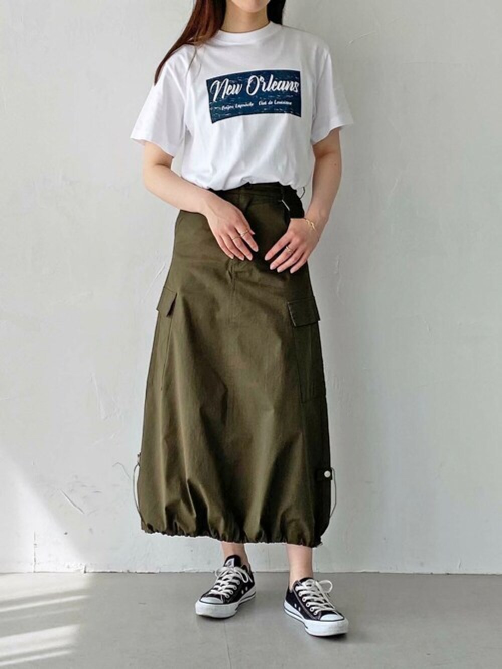 ご覧いただきありがとうございます🫶🏻 好きなシルエットに調節可能なドロストスカートが入荷しました! サイドの裾に付いたコードを引っ張ることで丸みのあるシルエットになります🐮 軽くて動きやすいのでレジャーにもおすすめです!