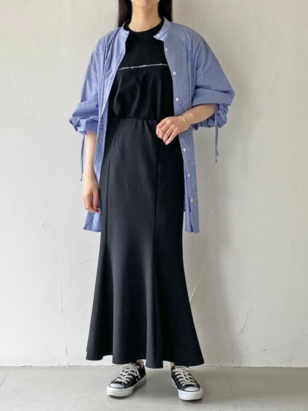 ご覧いただきありがとうございます シンプルなロゴTシャツを使ったレイヤードコーデ リラクシーなサイズ感のシャツがこなれ感のあるスタイルに見せてくれます