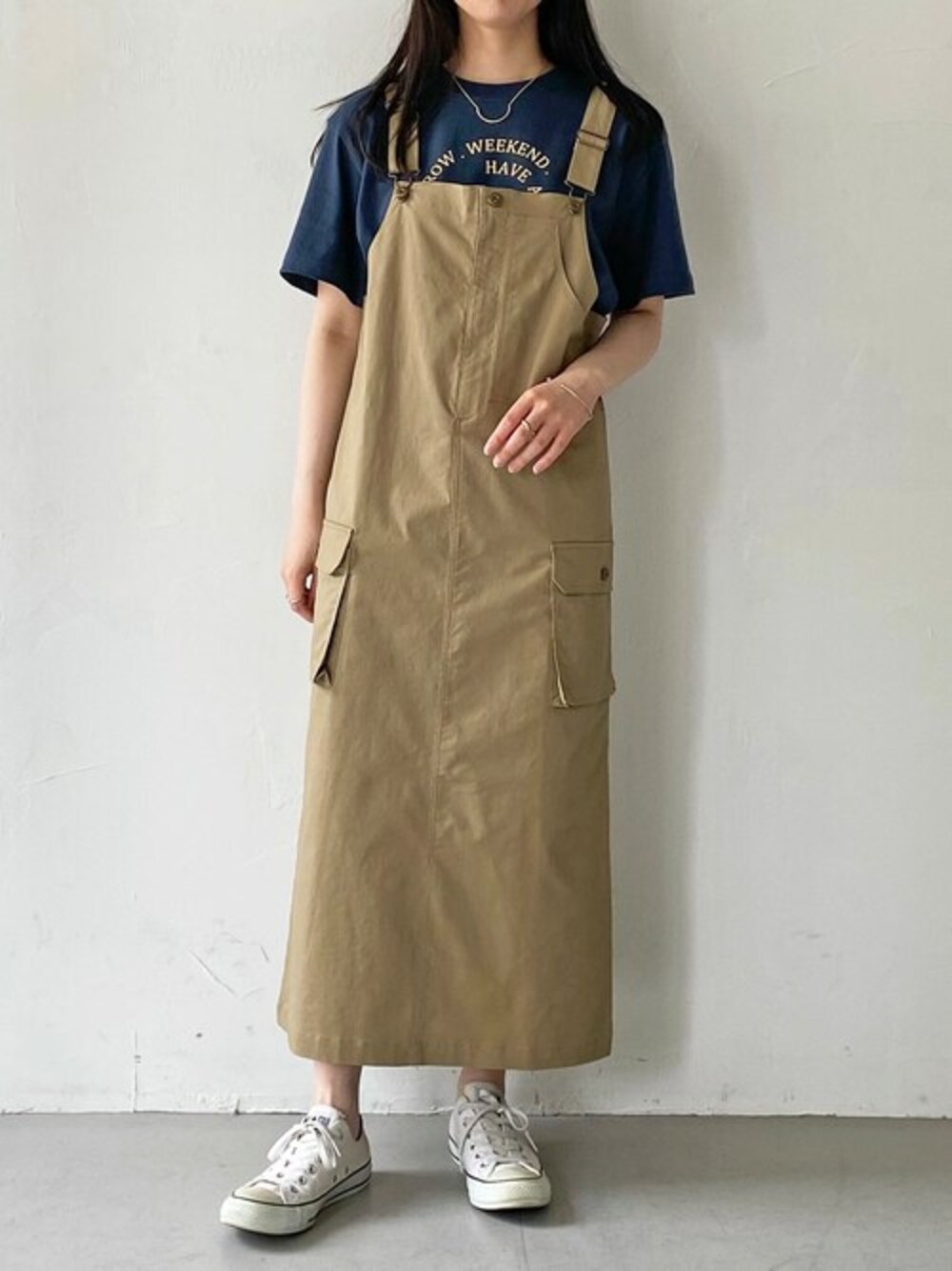 ご覧いただきありがとうございます🫶🏻 ミリタリーなジャンパースカートを使った大人カジュアルなコーデ🫧 オールシーズン着れるしっかりとした生地感です!