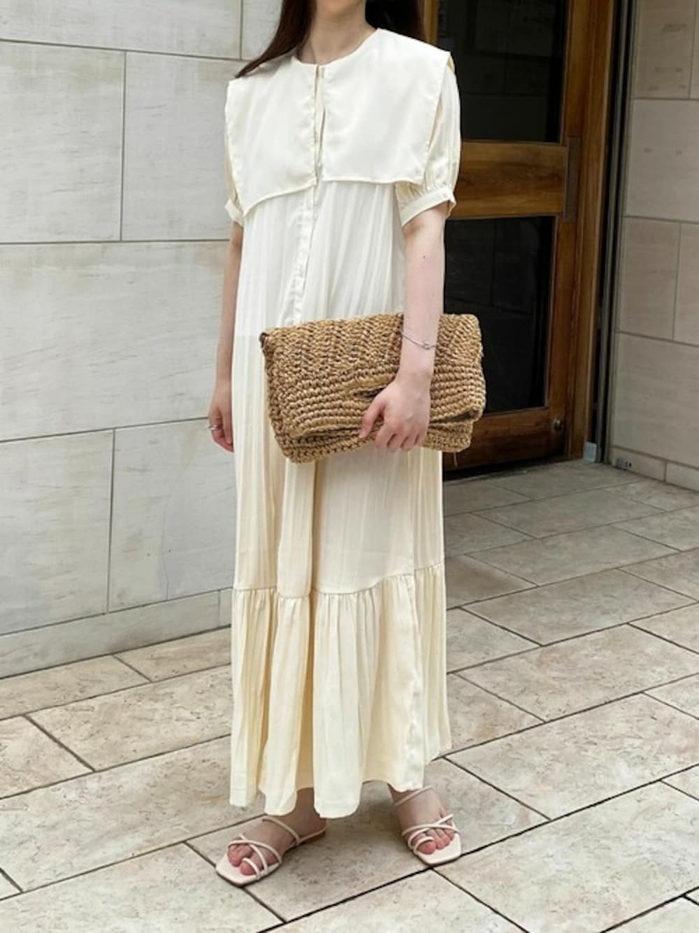 Rina(HER CLOSET)のワンピース「【shemoshelly】クリンクルケープデザインビックカラーワンピース 新色追加」を使ったコーディネート