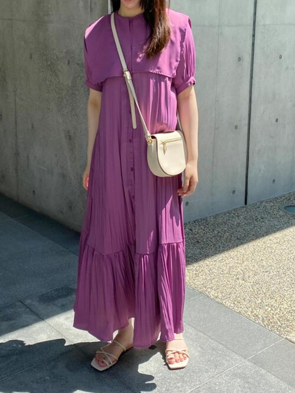 Rina(HER CLOSET)のワンピース「【shemoshelly】クリンクルケープデザインビックカラーワンピース 新色追加」を使ったコーディネート
