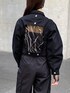 ご覧いただきありがとうございます🫶🏻 バックデザインが特徴的なジャケットとシアーのレイヤードコーデ☺︎ 袖口からシアーがちらっと見えるのがかわいいです🫠