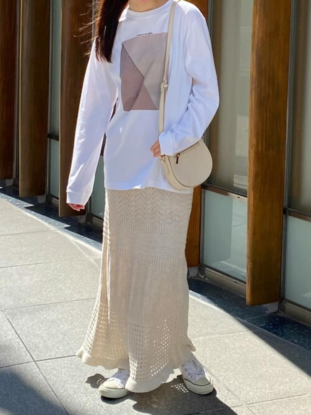 Rina(HER CLOSET)のTシャツ/カットソー「【shemoshelly】WEB限定ニュアンスパネルロゴロンT」を使ったコーディネート