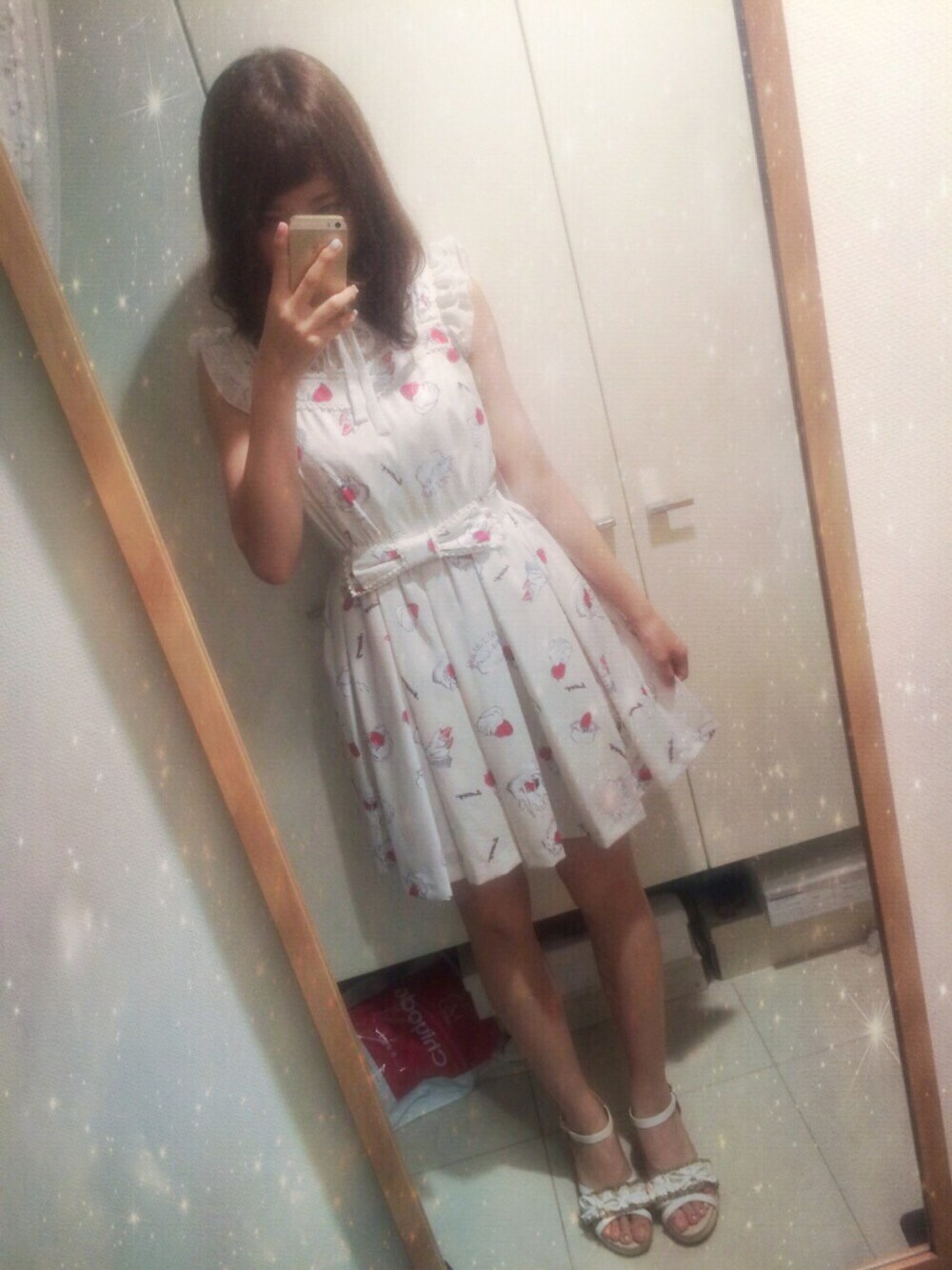 8.8 いちごミルク🍓🍼 point ☞ワンピースの柄😭💓 ☞白で統一😎👌🏻 ☞とりあえずかわいい。 今日は学校行ってからメイドカフェ行って萌えチャージしてもらってきた😌✨