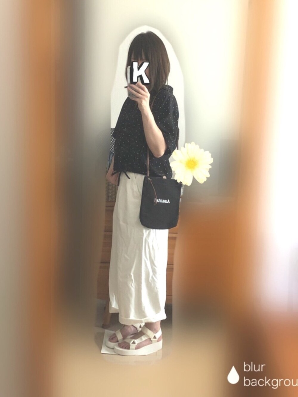 お気に入りのカスタネのドットのブラウスに、ホワイトデニム合わせました♡ 暑い日が続いているので、ワイドパンツは重宝します♡ お気に入りのカバンはくろももっています笑 本当にお気に入りです♡ なんだか、メンズっぽい立ち方で撮れたような気がします♡気のせいかな…笑