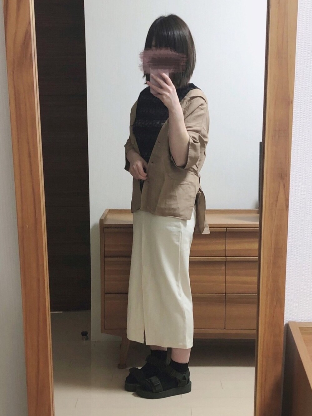 載せるかどうか迷ったのですが、せっかくなので載せてみます🥺🤟 サンダル以外mysticなコーデでした♡ ワッフルのタイトスカートはタイトだけど柔らかくてとても履きやすいです🥰 レースのタンクトップに、リネンのシャツ羽織りました♡ instagram📲kaya_3ak