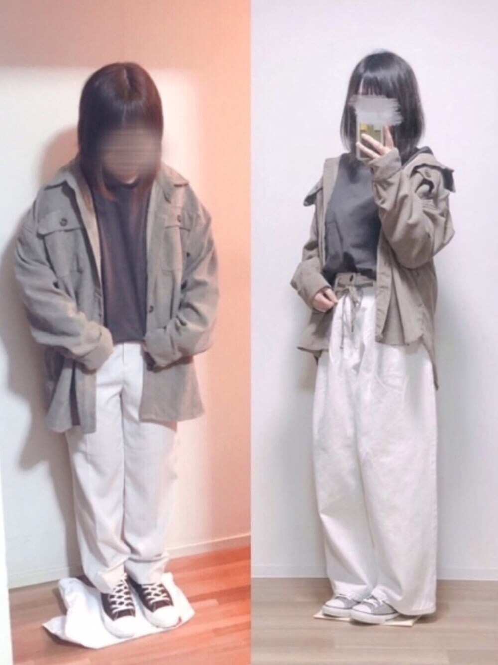 いつもとてもとても仲良くしてくれている「ぺとぷ」のぷーちゃんとリンクコーデしました🙈💕 プチプラのあやさんのシャツお揃いだ〜😍て会話から、リンクの話になってついに実現しました♡ インナーのユニクロユーのブラウンのロンTもおそろいで、ホワイト系のパンツにコンバースで合わせました🙈💕 ぷーちゃんがたくさんアドバイスをくれて、綺麗なベージュ系のグラデコーデになって嬉しいです☺️💓 ぷーちゃんとはしょっちゅう連絡を取り合っていて、遠く離れて住んでいるけど、本当に優しくて信頼のできる大切なおともだちです♡今回も家撮りとか、わたしのポーズのくせとかたくさん寄せてくれました🥺💕ぺとぷカップルのほのぼのな雰囲気も服装も大好きです🙈💓 お洋服を通して仲良くなれたことがとても嬉しいです☺️💕