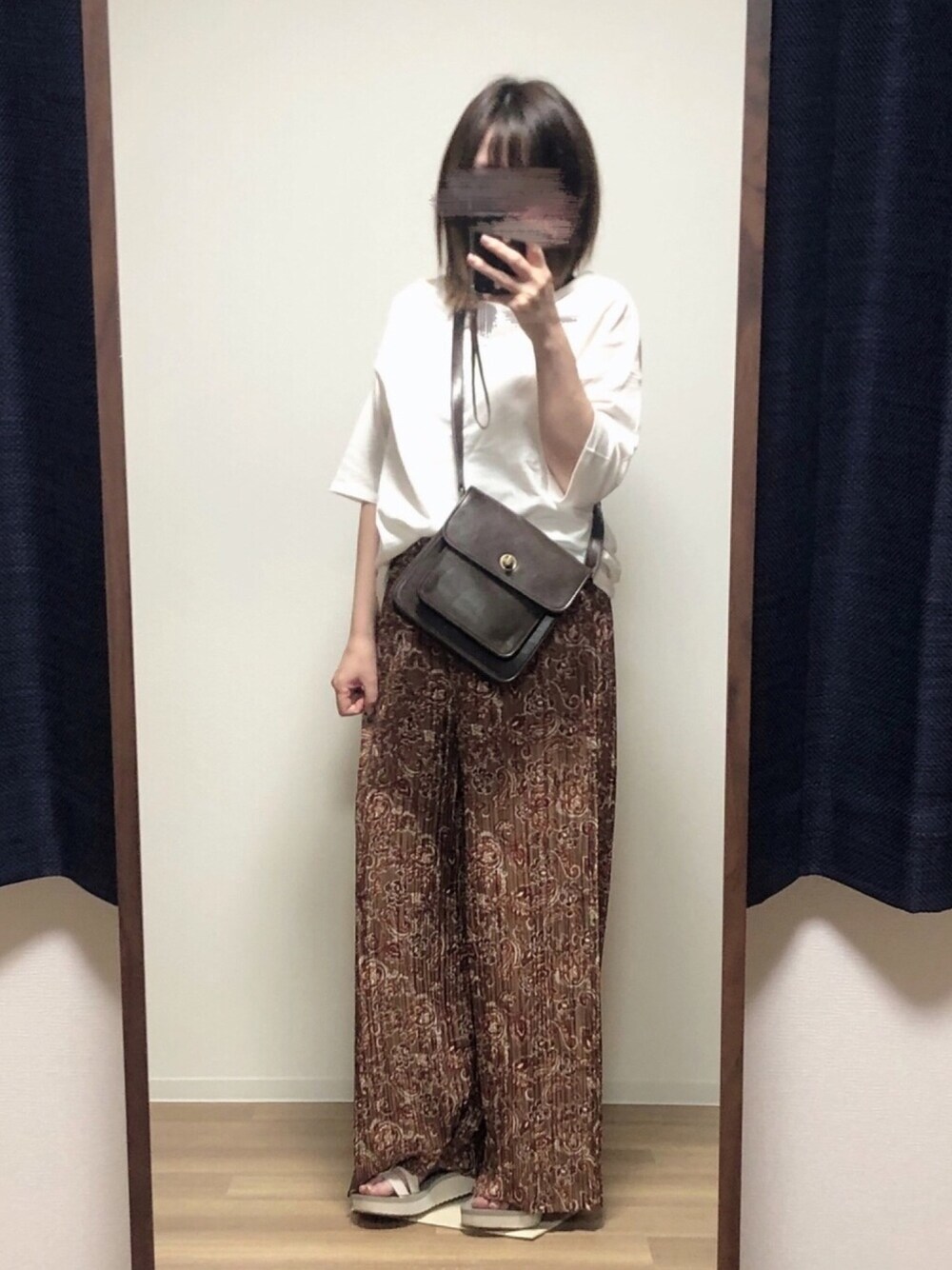 上下しまむらのプチプラコーデです♡ トップスはテラさんのコラボのTシャツでシンプルなロゴと肩のデザインがとっても可愛いです🥺✨可愛すぎてベージュも買いました🙈🌷笑笑 ボトムスのプリーツパンツはさらっとして履き心地もいいし、ブラウン系の色味がお気に入りです♡ どちらも1000円くらいでした🥰