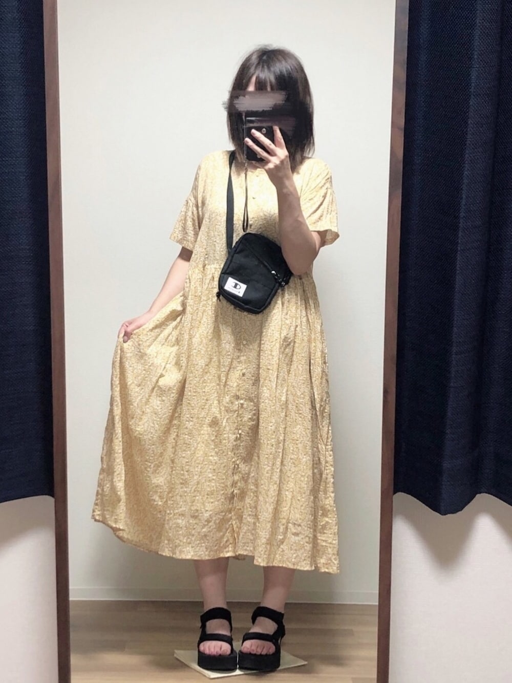 サマンサモスモスの花柄ワンピースはセールで買いました♡ あまり選ばない黄色に挑戦してみました🌻🍯 一気に夏らしくなってお気に入りです♡