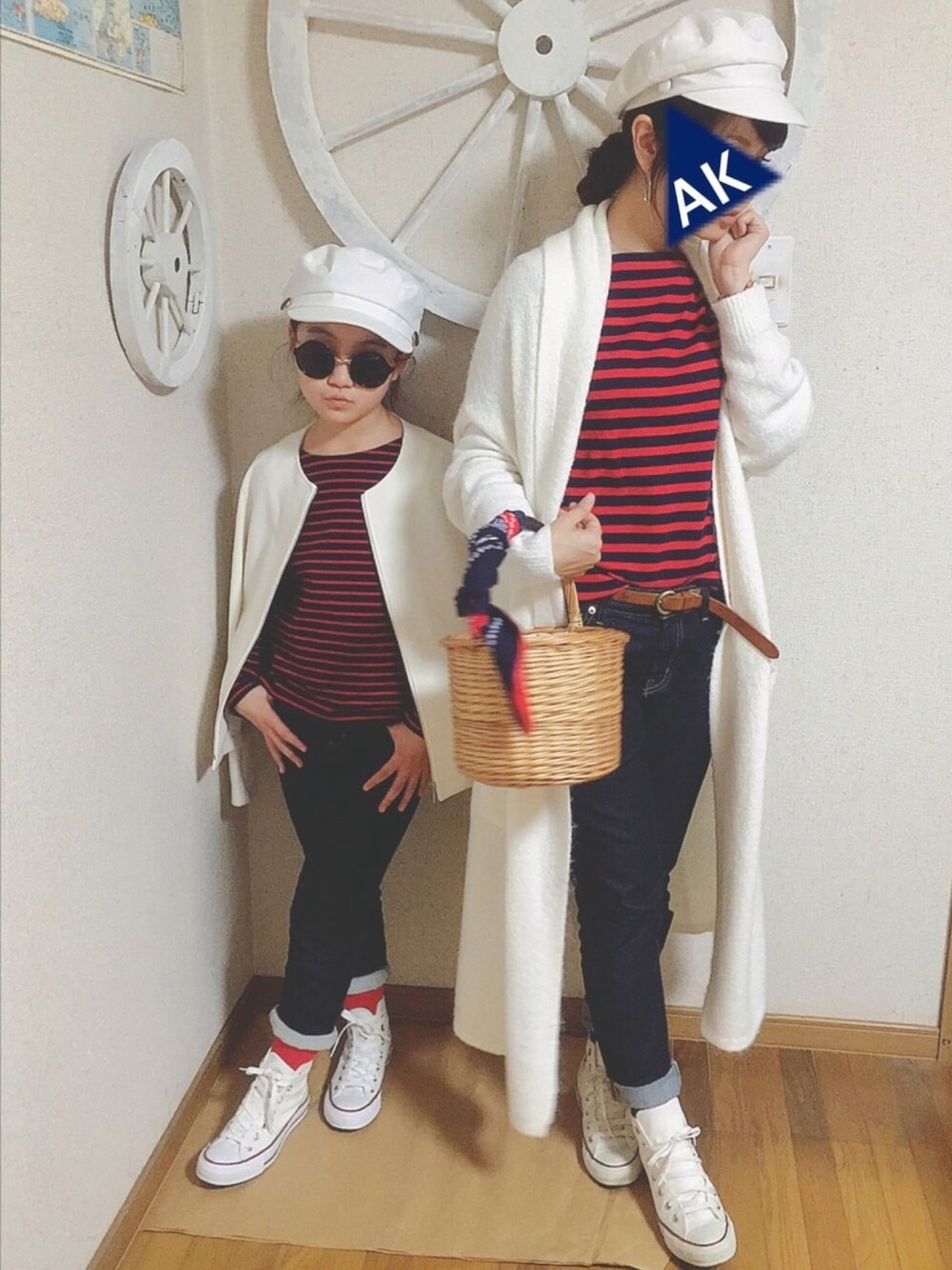 ご覧いただきありがとうございます♬ いつも、いいね♡セーブもありがとうございます。嬉しいです! 親不知に悩まされ、ほっぺたが腫れ上がり、顔が四角になっています。。 (´°̥̥̥̥̥̥̥̥ω°̥̥̥̥̥̥̥̥`) 痛いし、四角いし、口開かないし、、、 気分を上げるために、写真撮影!笑 気の早いマリンテイスト⚓️ 赤紺ボーダー✖︎ホワイトアウター。 まだ寒いから、母は冬アウターだけど、、、 キャスケット?マリン帽?が最近のお気に入りでーす。 四角の顔を隠す為に手を当てて写真撮ってたら、 「ママ、顔スタンプしてるから、別にいいんじゃない?」 確かな、ツッコミ。いやー最近ツッコミが、ごもっとも!成長してますな。 いつも、ホントにありがとうございます ☺︎☺︎☺︎