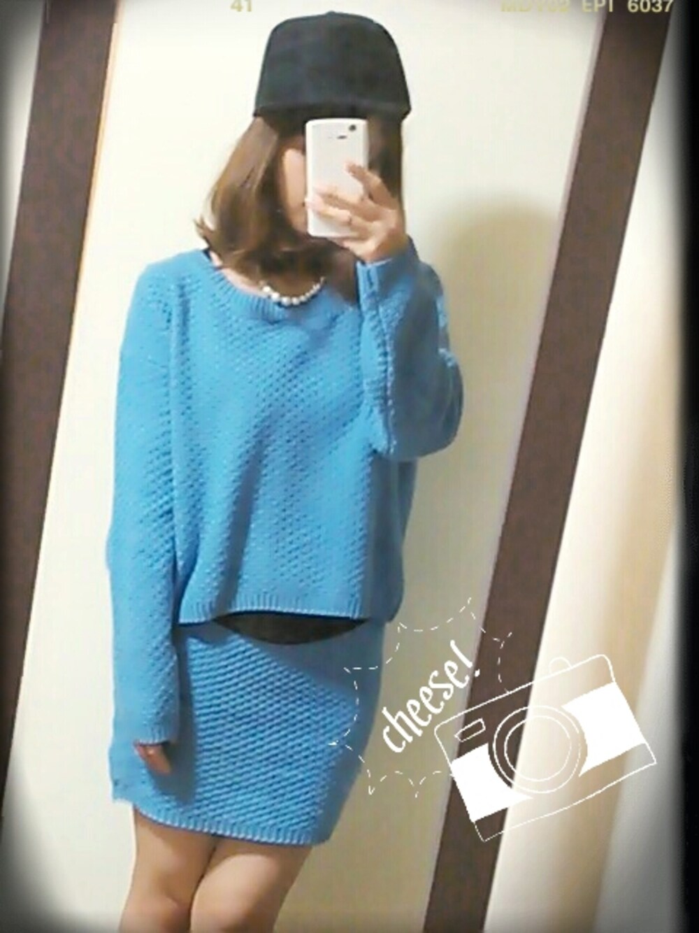 ブルーのきれいな色のセットアップを キャップではずしたcoordinate