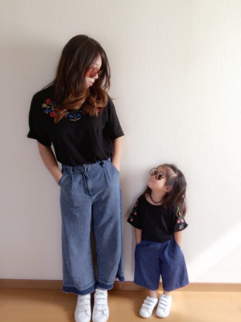 リンクコーデ👩👧💖 刺繍トップス × ワイドパンツ