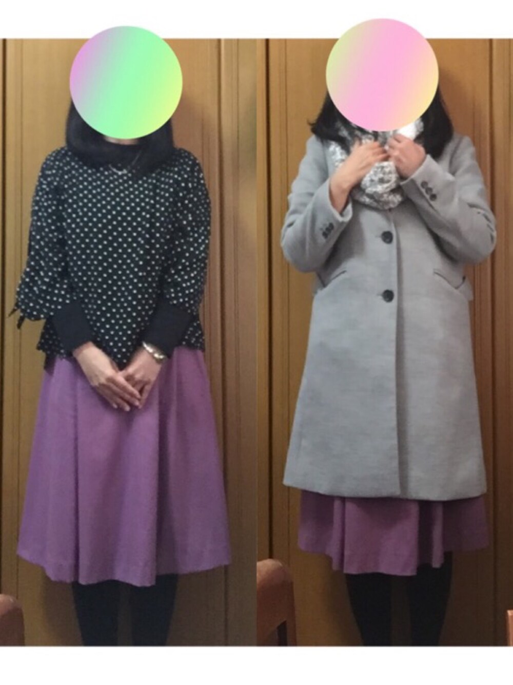 コートはノーカラーにしてます