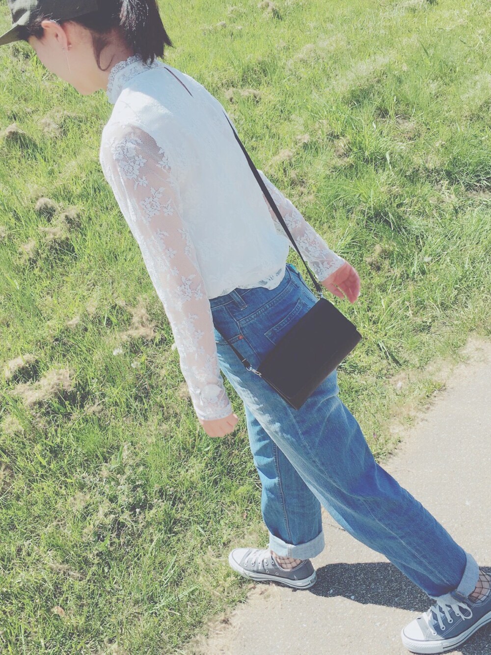 野球見に行った日 キャップはメンズもの、 カタチがかわいい♡♡♡ instagram : ch___pi08