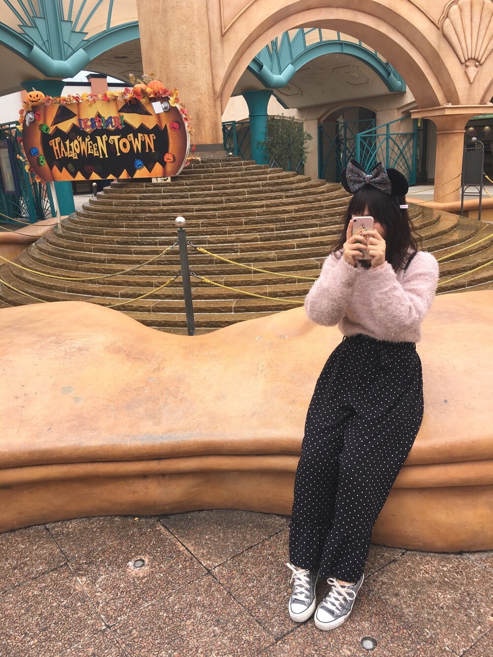 ディズニーランドいってきた ピンクのカーディガンは 全部ボタンを止めて、反対側で着てニット風に💭💭 instagram : ch___pi08