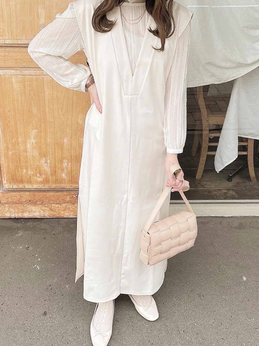 おはようございます☁️ 昨日のコーデ🫶🏻 レイヤードコーデしやすいワンピース🫧 インスタも見に来てね🧸 →ri_beige01