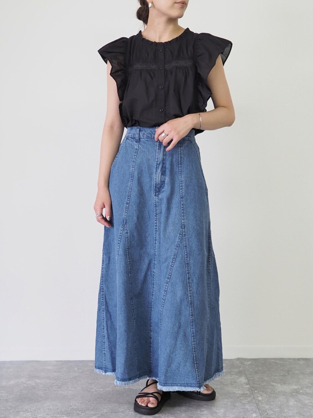 Riberry_official(Riberry)のデニムスカート「裾切替Aラインツイルスカート」を使ったコーディネート