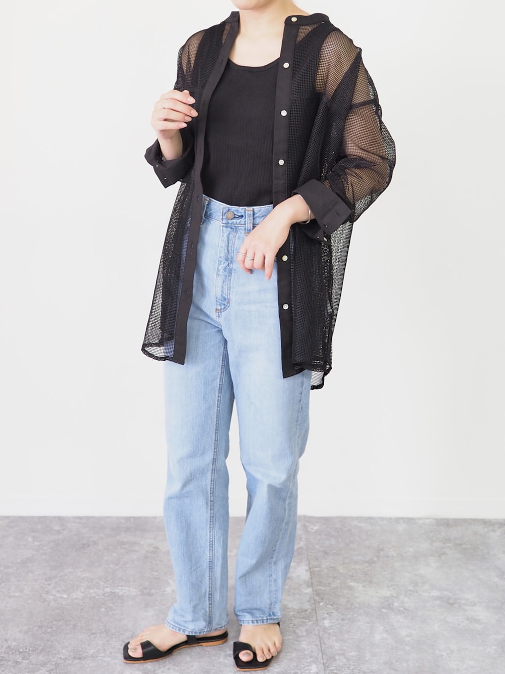 Riberry_official(Riberry)のシャツ/ブラウス「バンドカラーメッシュシャツ」を使ったコーディネート