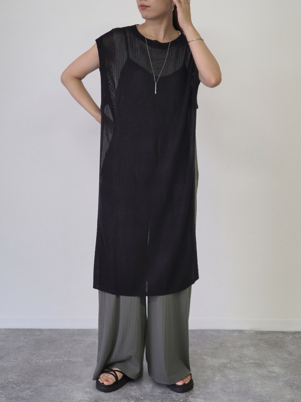 Riberry_official(Riberry)のベスト「メッシュロングベスト」を使ったコーディネート