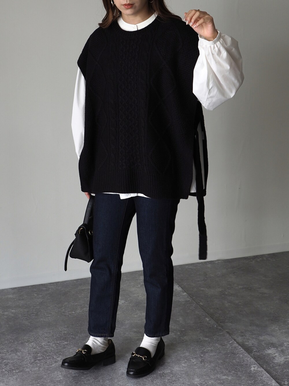 Riberry_official(Riberry)のベスト「サイドリボンケーブルニットベスト」を使ったコーディネート