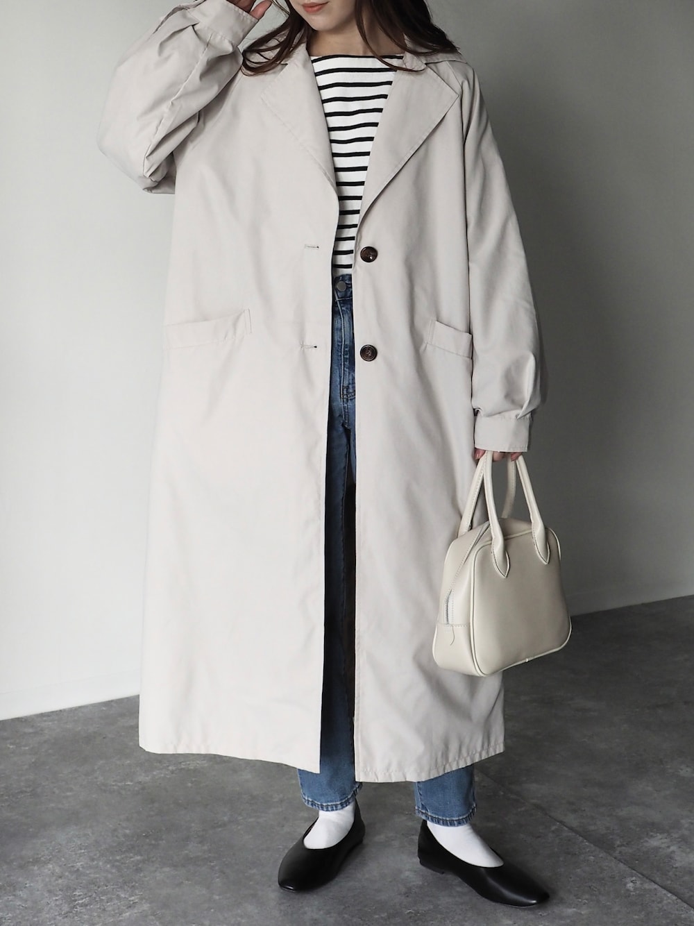 Riberry_official(Riberry)のトレンチコート「ラグランボリューム袖トレンチコート」を使ったコーディネート