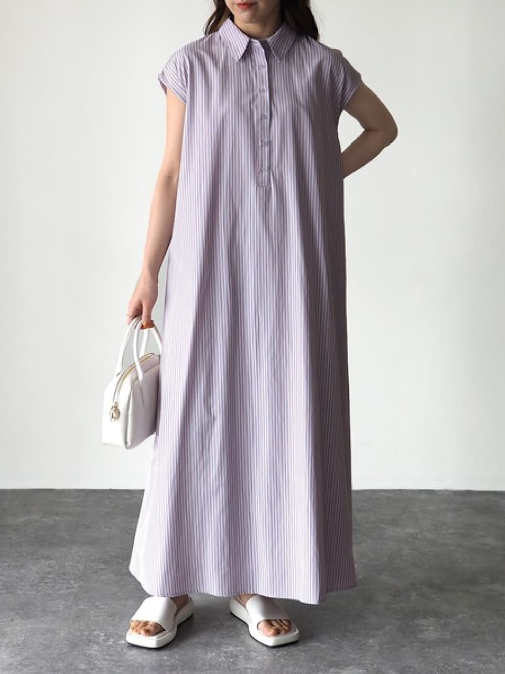 Riberry_official(Riberry)のシャツワンピース「ストライプノースリシャツワンピース」を使ったコーディネート