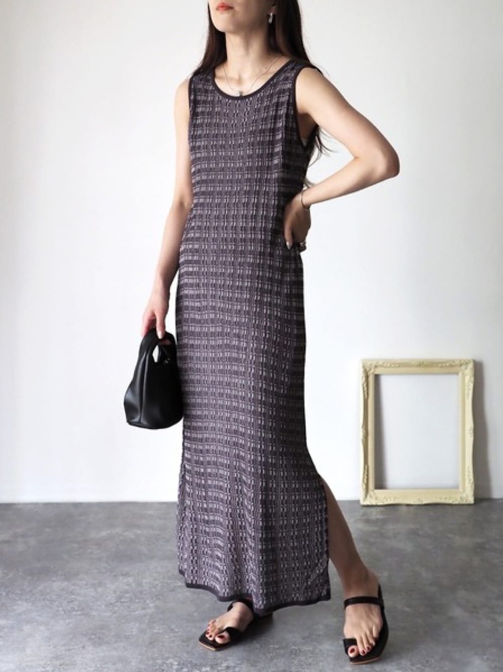 Riberry_official(Riberry)のワンピース「ランダムリブ サイドスリットノースリニットワンピ」を使ったコーディネート