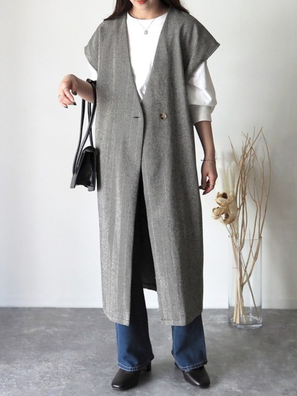 Riberry_official(Riberry)のベスト「起毛ヘリンボーン ロングジレ/ベスト」を使ったコーディネート