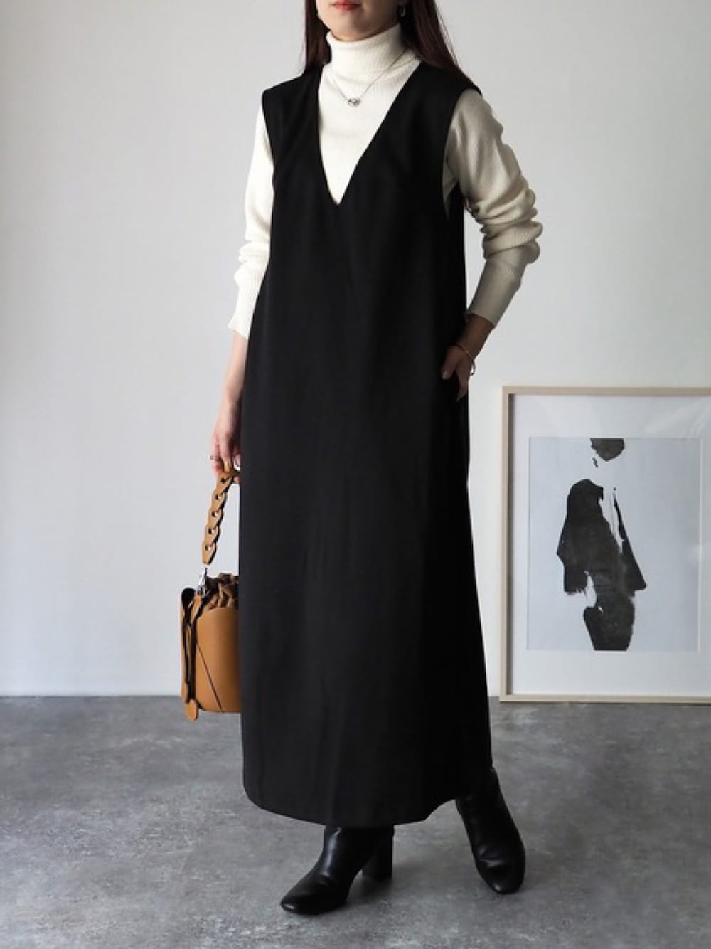 Riberry_official(Riberry)のジャンパースカート「後ろスリットVネックジャンスカ」を使ったコーディネート