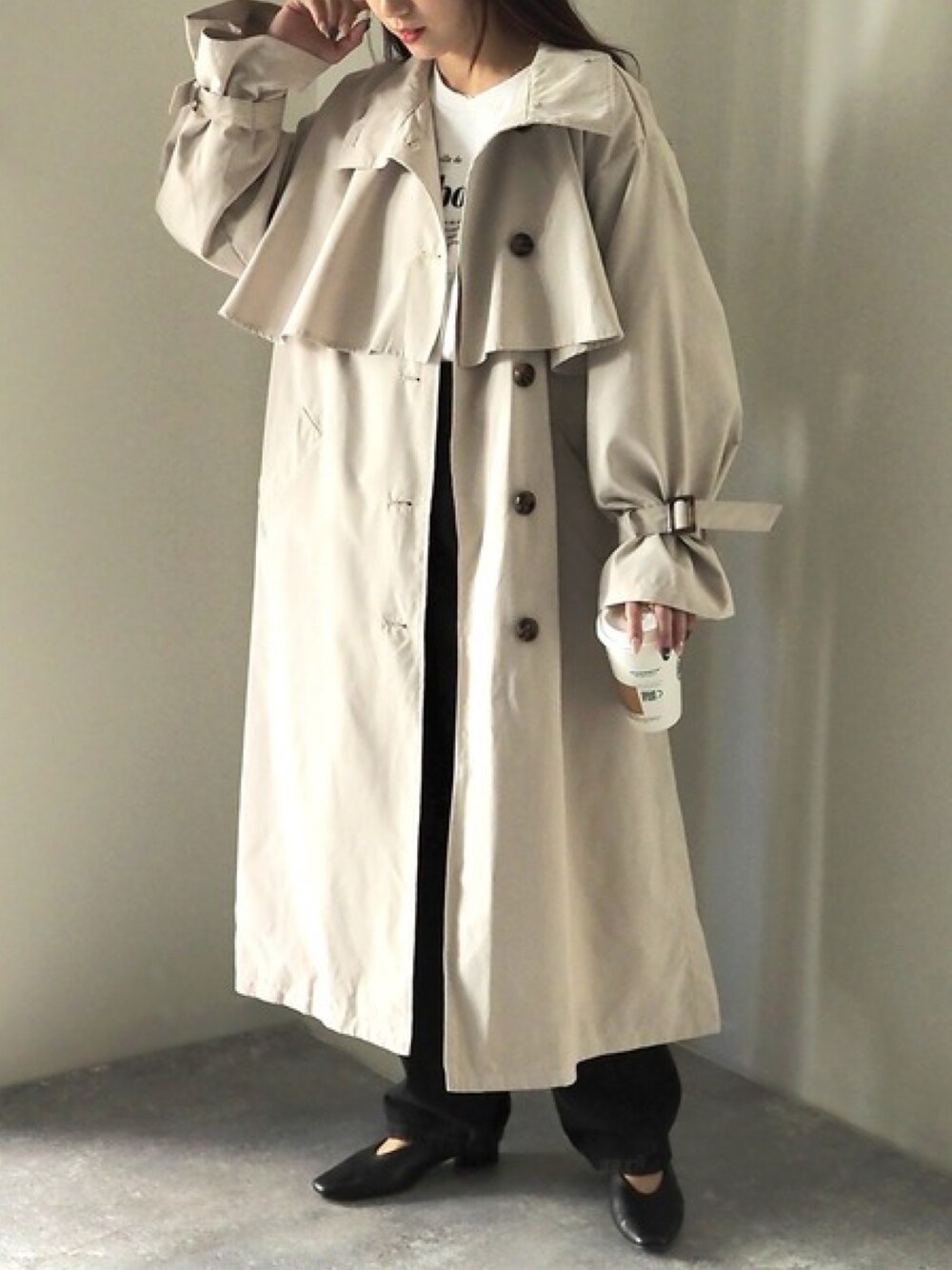 Riberry_official(Riberry)のトレンチコート「スタンドカラーヨーク付きスプリングコート」を使ったコーディネート