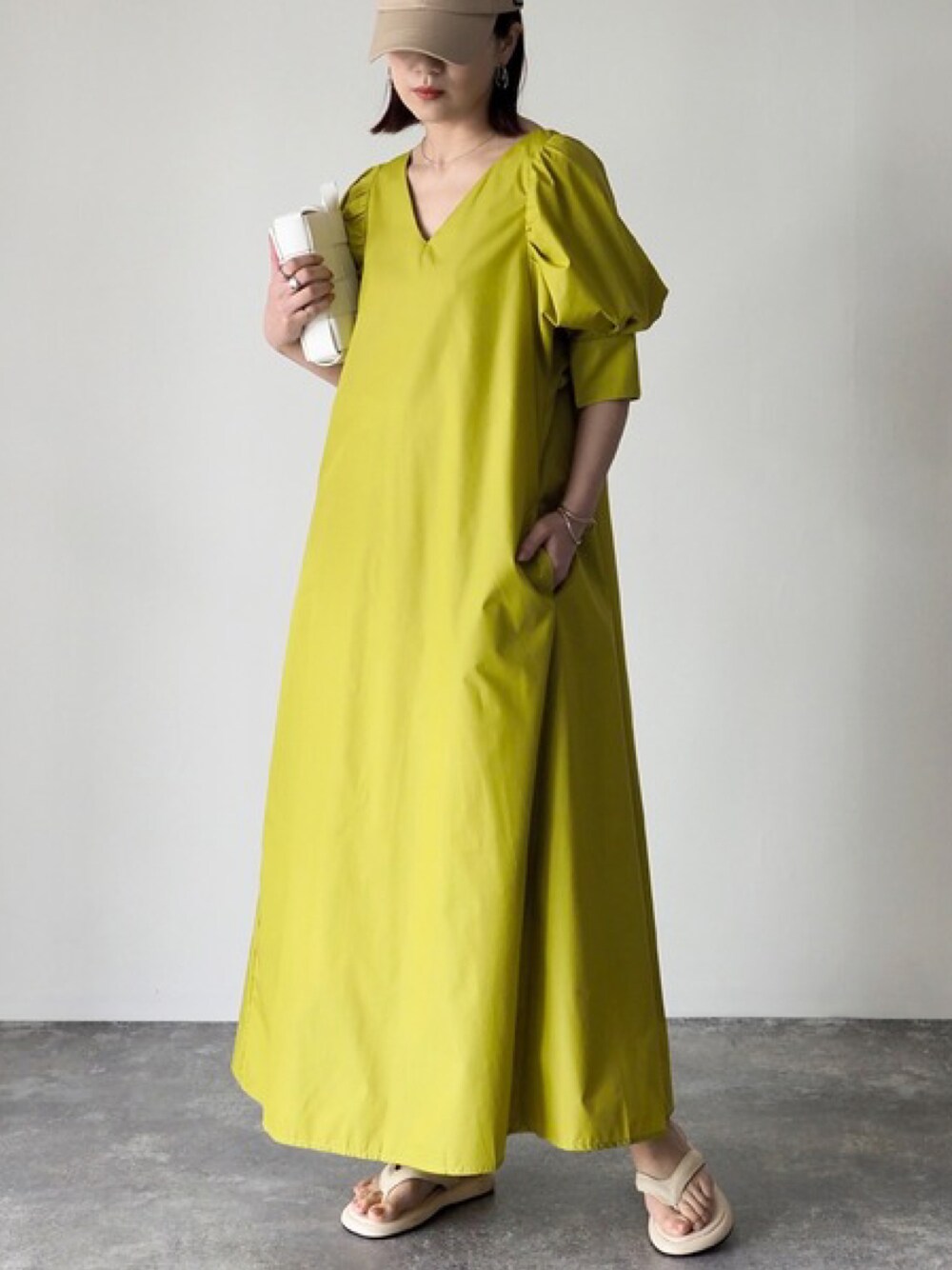 Riberry_official(Riberry)のワンピース「Vネックパフスリーブワンピース【無地/ストライプ】」を使ったコーディネート