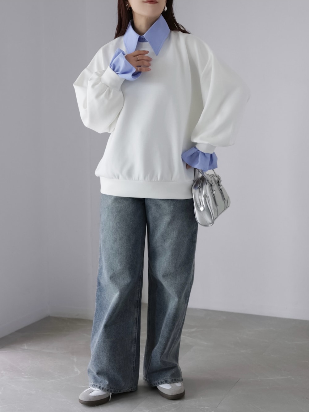 ✔シャツ襟ありでキレイめ ✔外してシンプルスウェット ✔袖だけ残してこなれ感 気分で印象変えられる優秀アイテム カジュアルなデニム合わせでも どこかきれい見えするのが◎