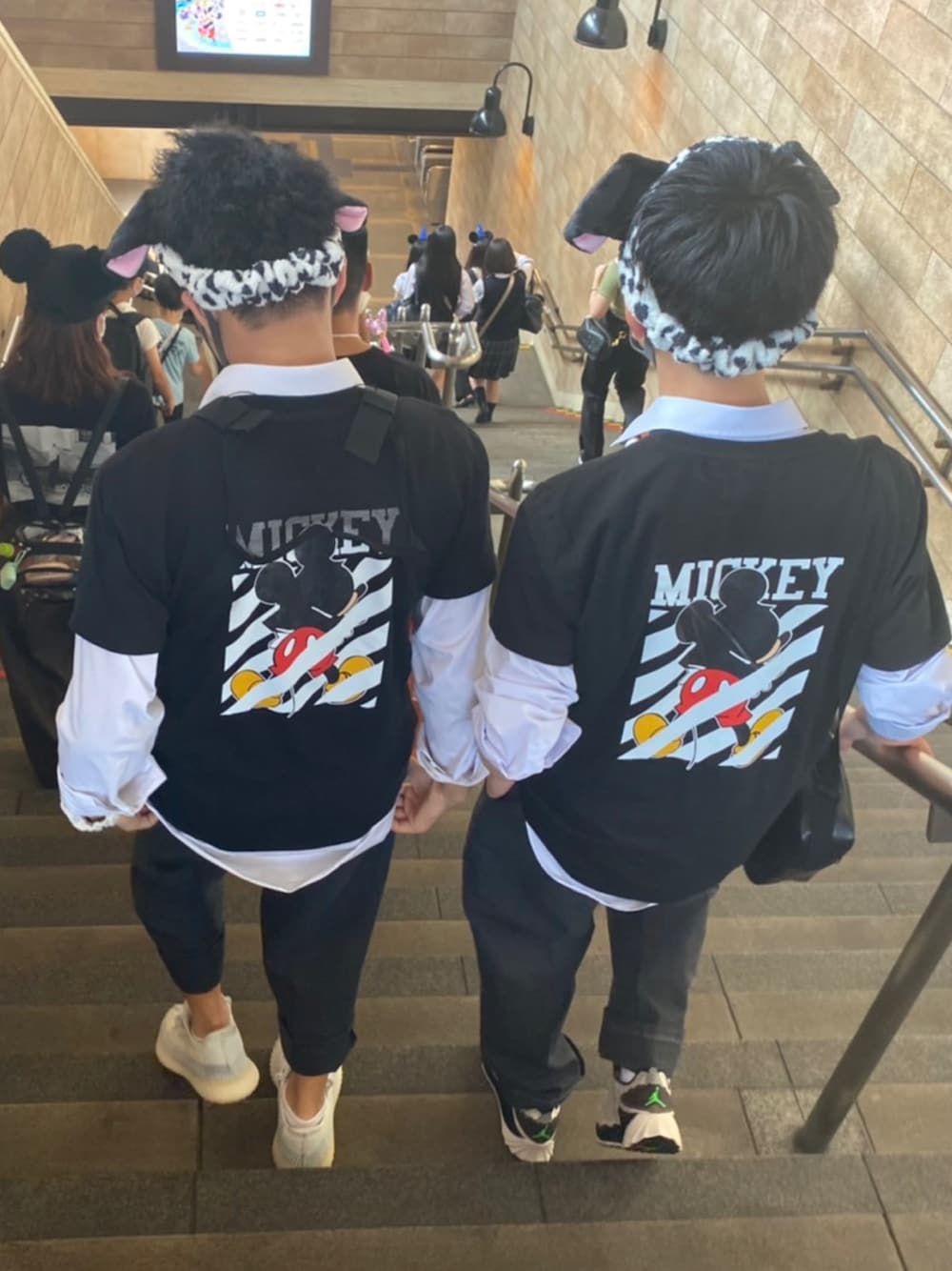 高校時代に男4人で制服ディズニー オソロコーデしました。 夏休み前の終業式後にダッシュで向かいました